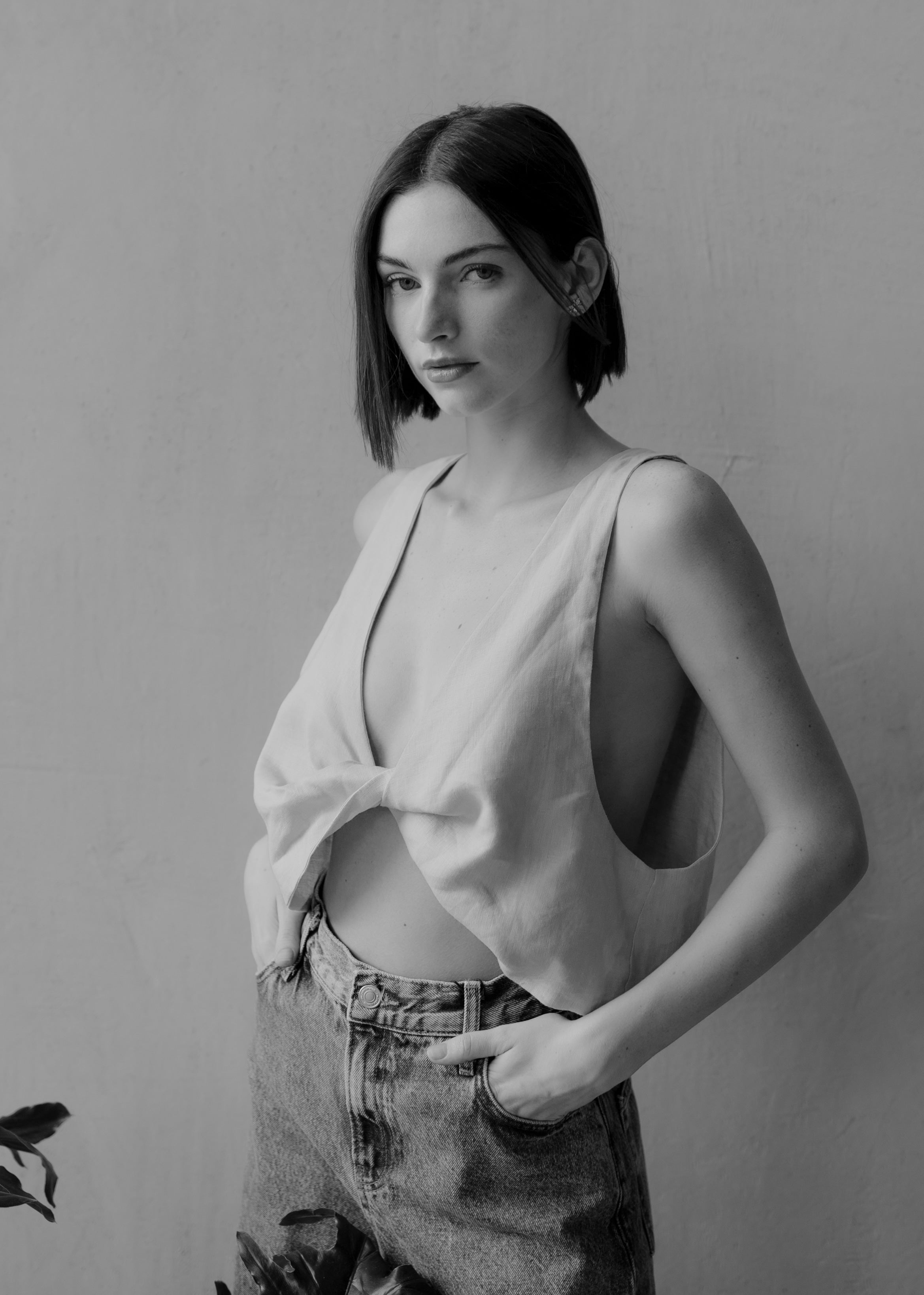 El top "Monet" es sin mangas, de lino diseñado para usarse de dos maneras, con una torcedura en el frente que crea un favorecedor escote en V. Versátil y moderno, ideal para armar looks frescos y elegantes en cualquier ocasión.