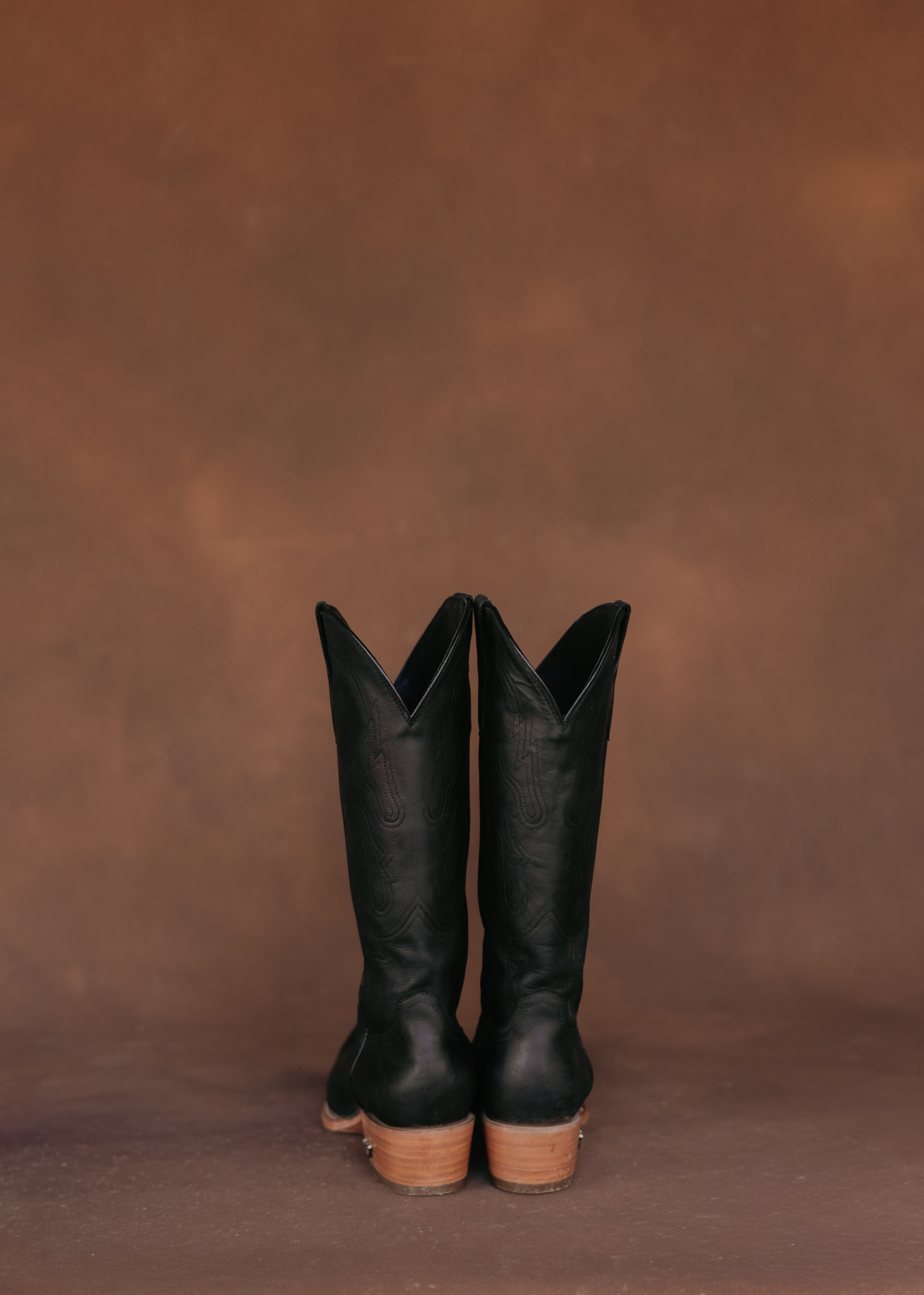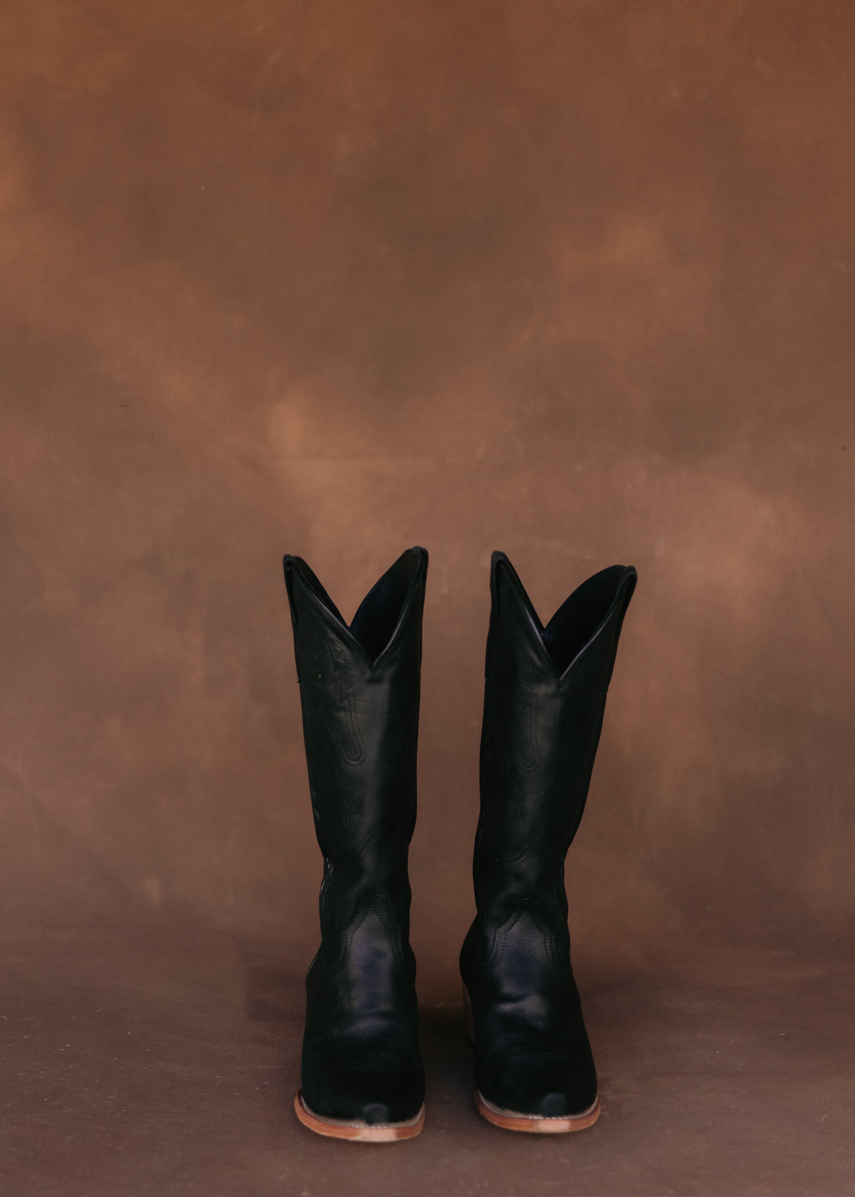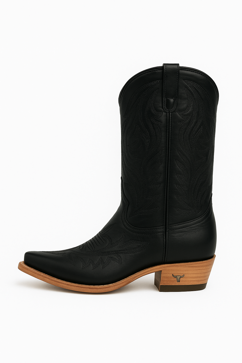 Botas negras 100% de piel con diseño artesanal de bordado y punta cuadrada. Incorporan una plantilla especial que brinda confort superior. Una pieza única que fusiona artesanía, estilo y durabilidad para elevar cualquier estilo con un toque sofisticado.