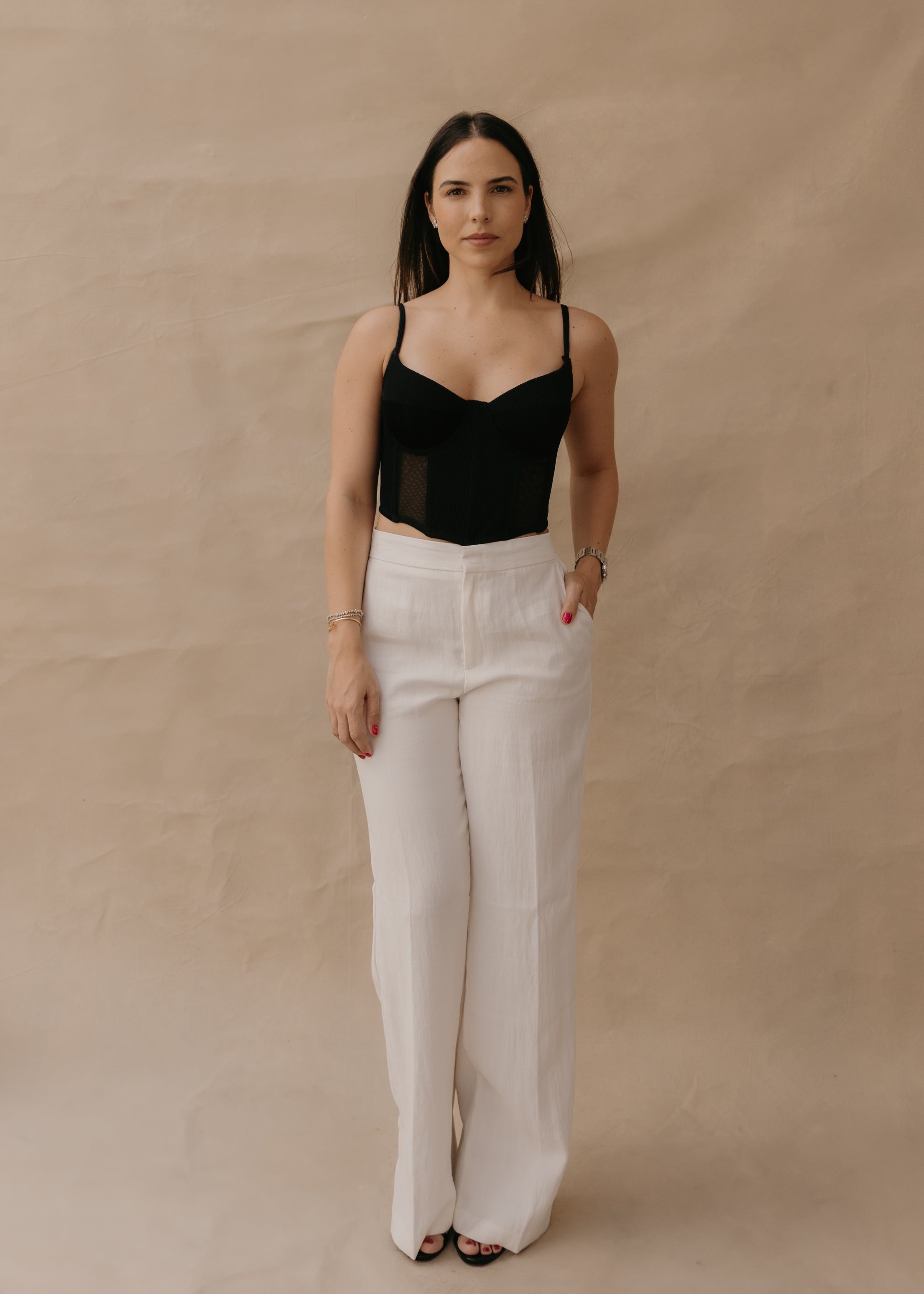 Top estilo corset con copa estructurada en licra y mesh, con tirantes y cierre trasero. Su escote realza el busto mientras las transparencias sutiles aportan un toque sensual y moderno. Se ajusta al cuerpo con precisión gracias al zipper posterior, ofreciendo firmeza y comodidad. Ideal para llevarla elevar tu outfit.
