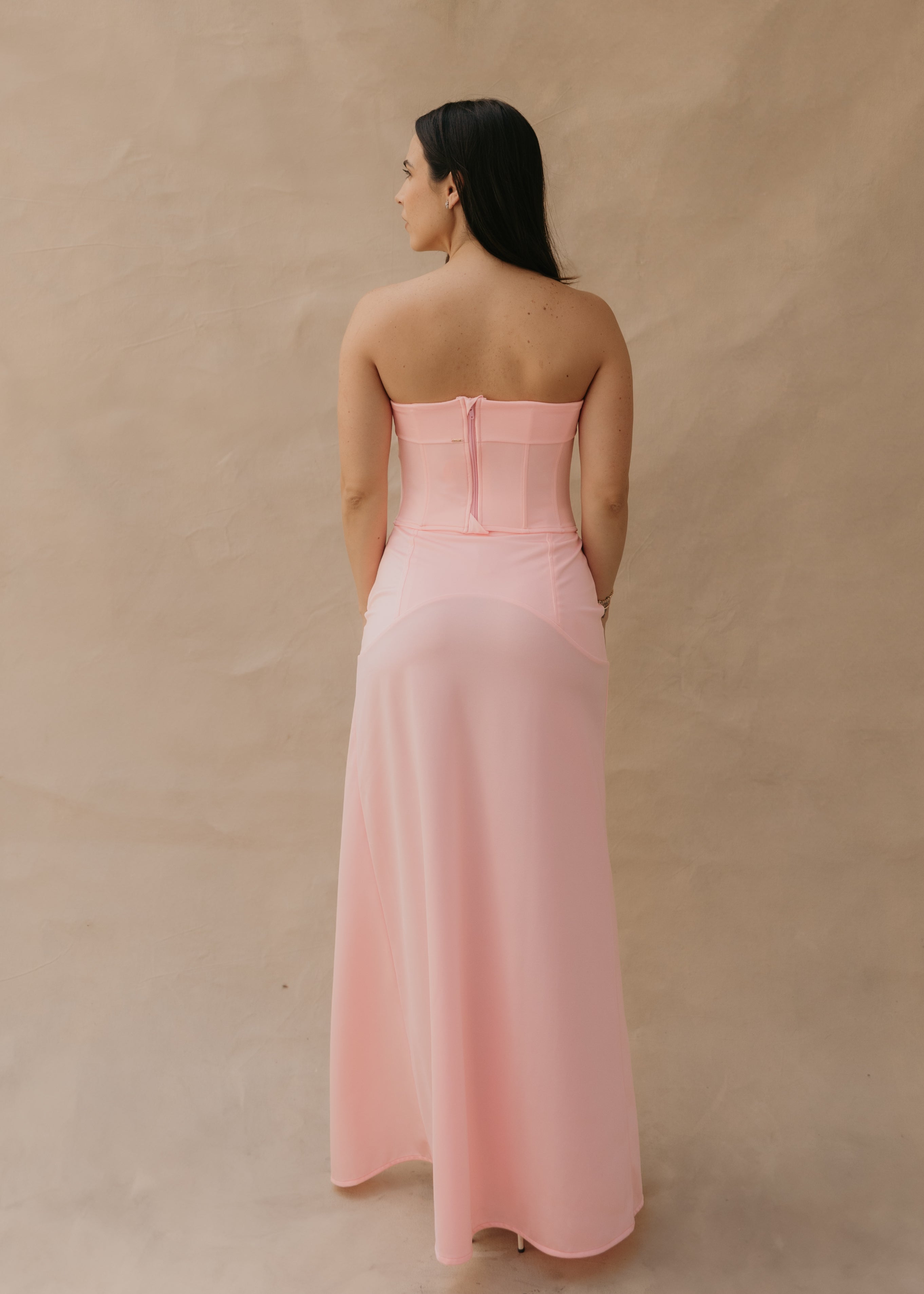 La Falda Carlota es una pieza de diseño audaz y sofisticado que fusiona la estructura clásica de la corsetería con la elegancia fluida de una falda maxi. Esta prenda es una declaración de intenciones: realzar y celebrar la figura femenina con un lujo discreto y atemporal.