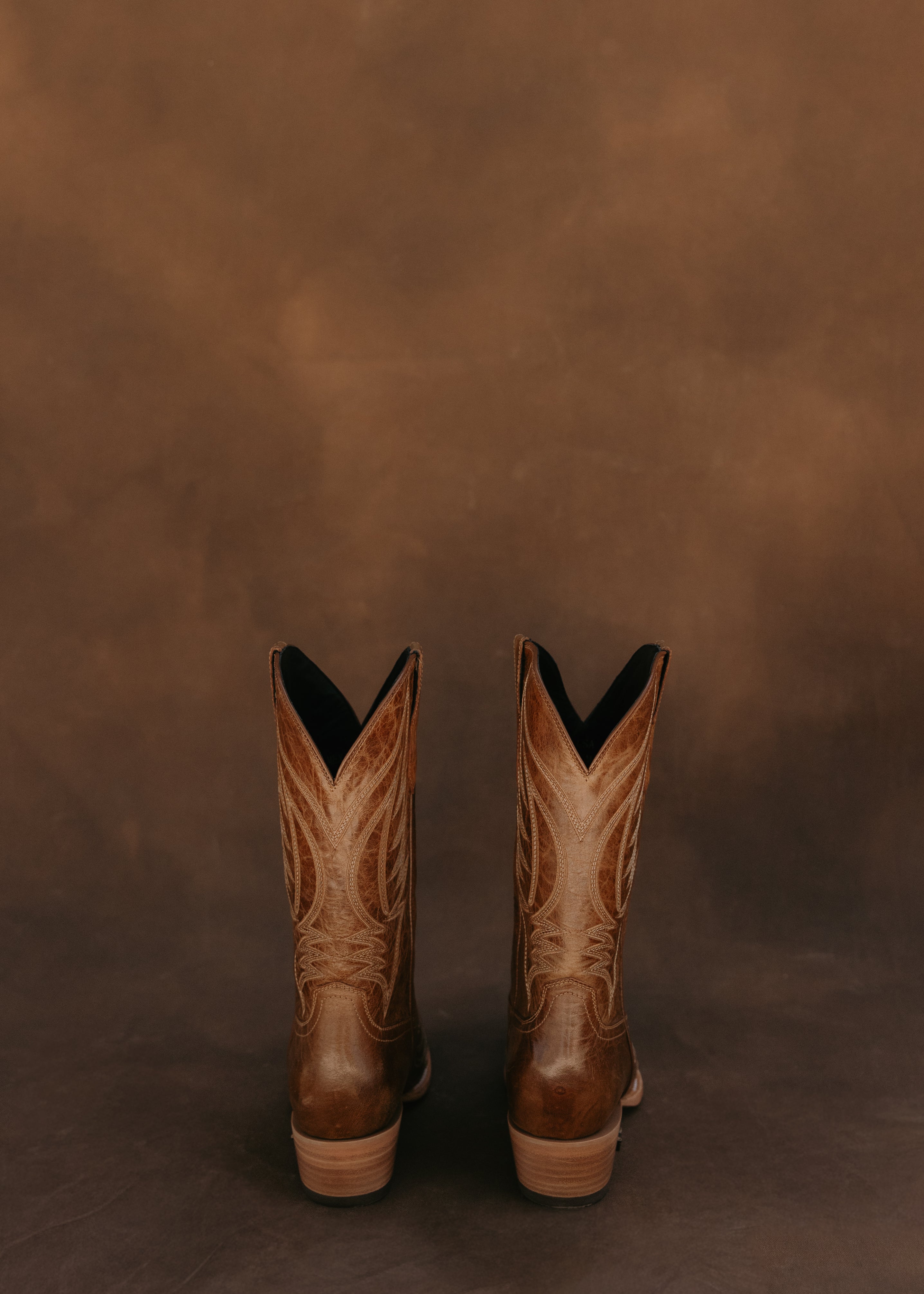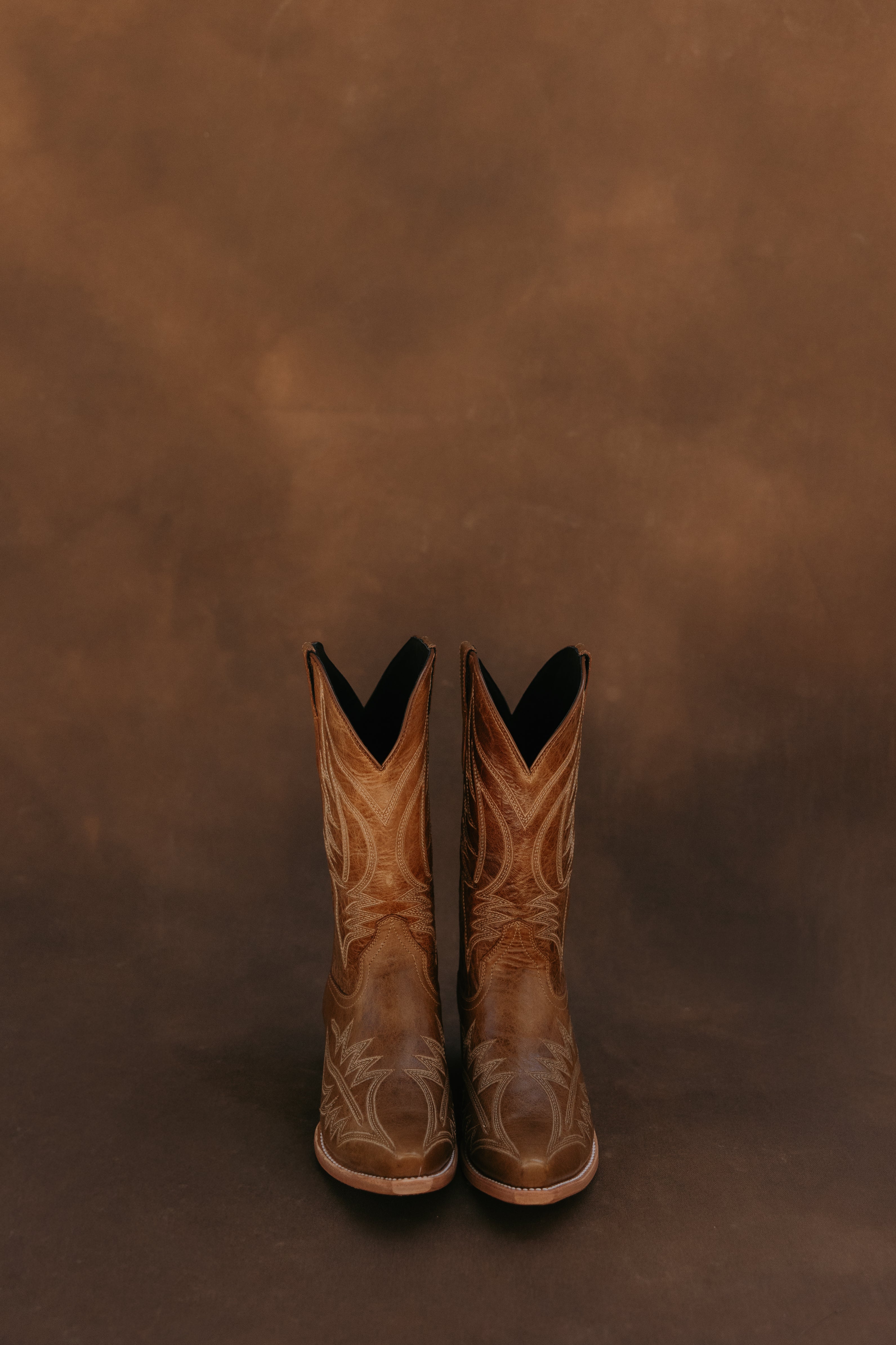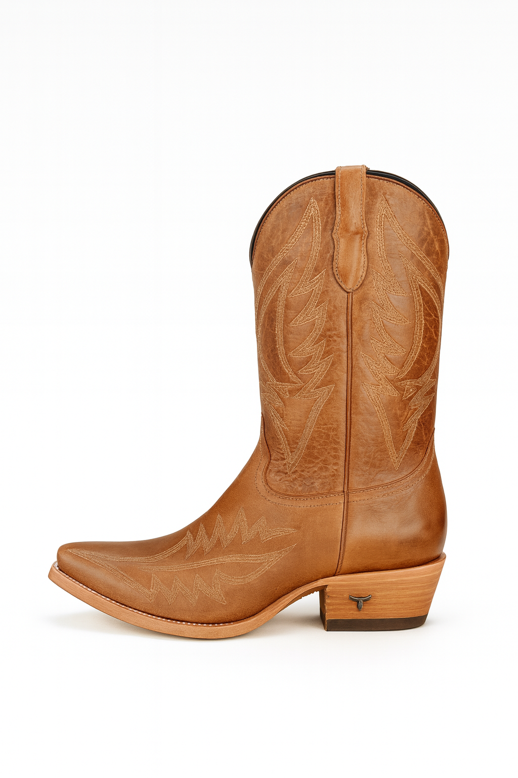 Botas café 100% de piel con diseño artesanal de bordado y punta cuadrada. Incorporan una plantilla especial que brinda confort superior. Una pieza única que fusiona artesanía, estilo y durabilidad para realzar cualquier look con calidez y autenticidad.